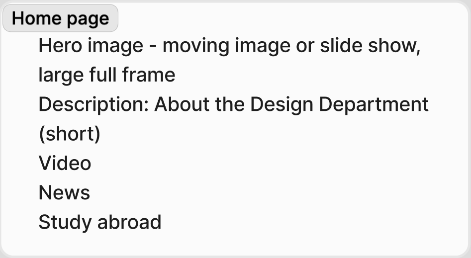 It’s clear that the student showcase of work was the most important part of the website. Over time that showcase of work will become longer so I assume that these images should be organized in a blog-looking format.