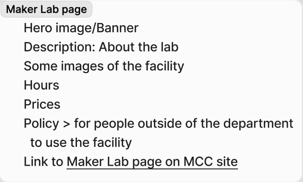 In addition, on our figjam board, we have sections dedicated to what content will be used for which page. I kept this information in mind (but is subject to change in the future).