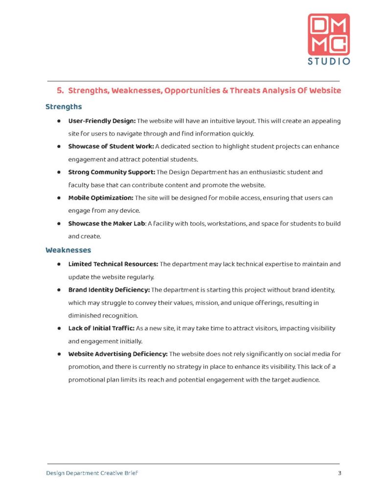 Design Department Creative Brief & Page Numbers: In the footer so it appears on every page