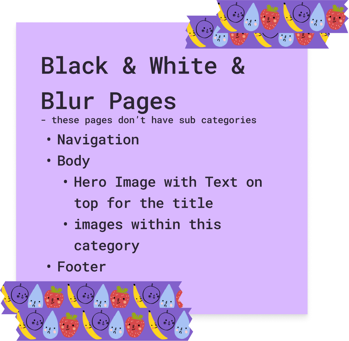 After this, I came up with the content that would be present on each page.