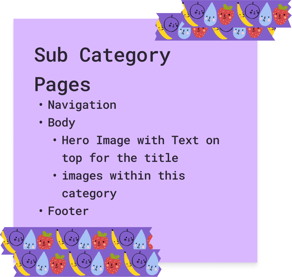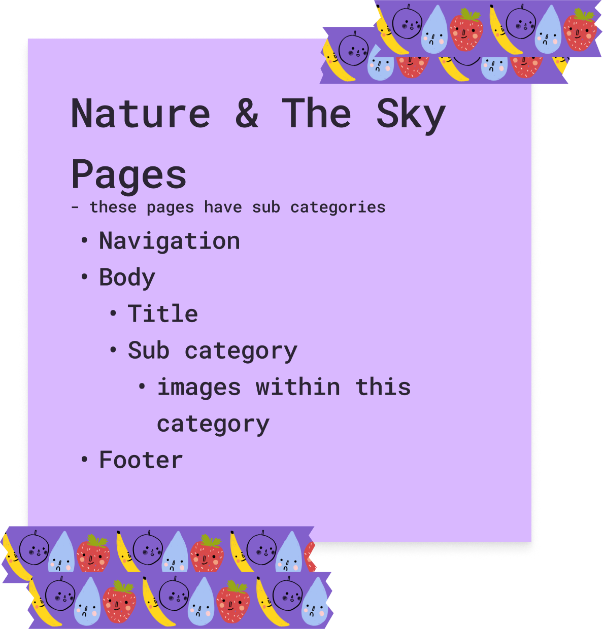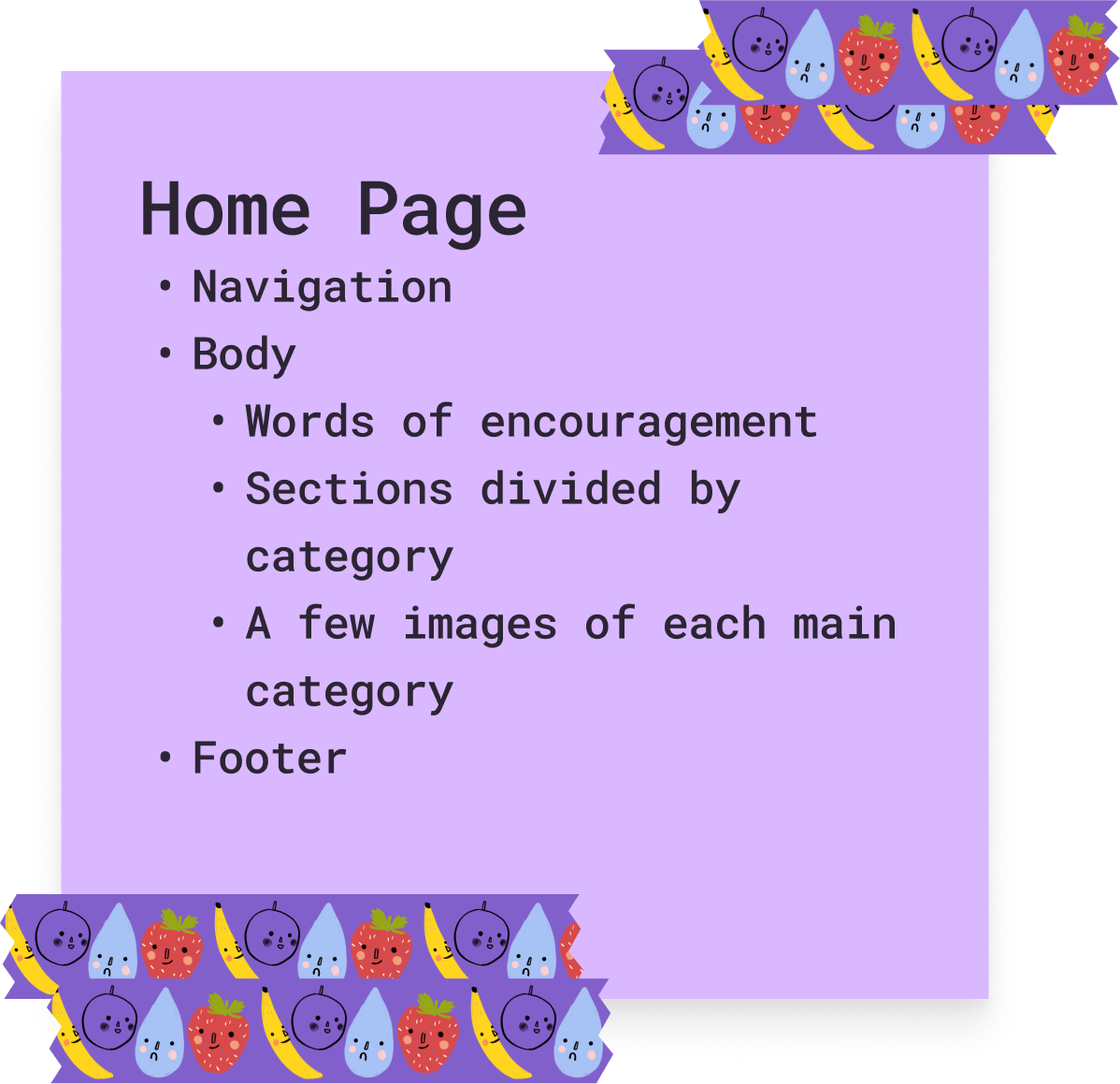 Much of this information was about logistics. What will be inside the navigation? What will be in the footer? Which elements will be present on each page and which ones will be unique?