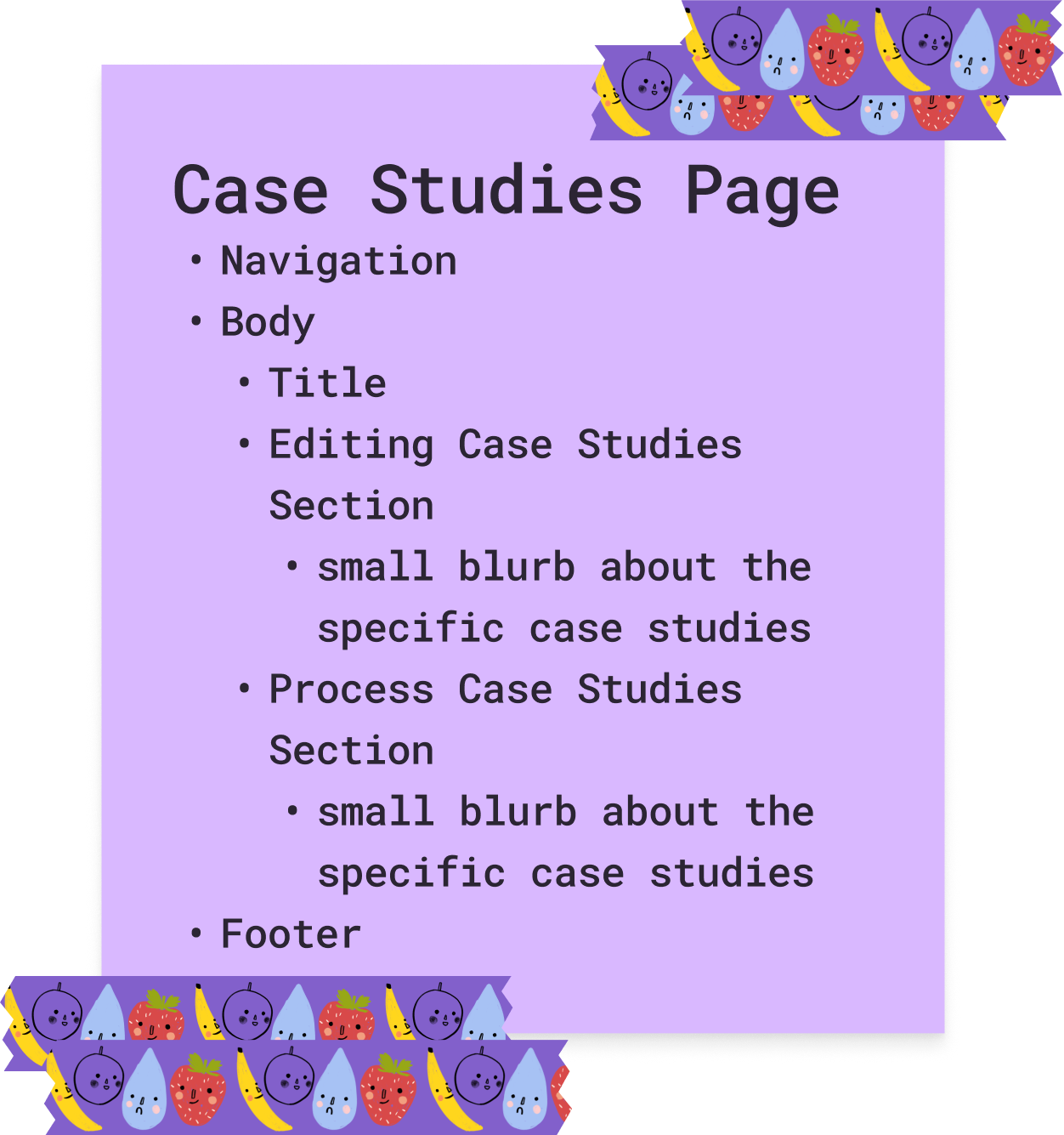The case studies page would be different since it would be made up of posts instead of images which is why they are a different color and shape on the site map.