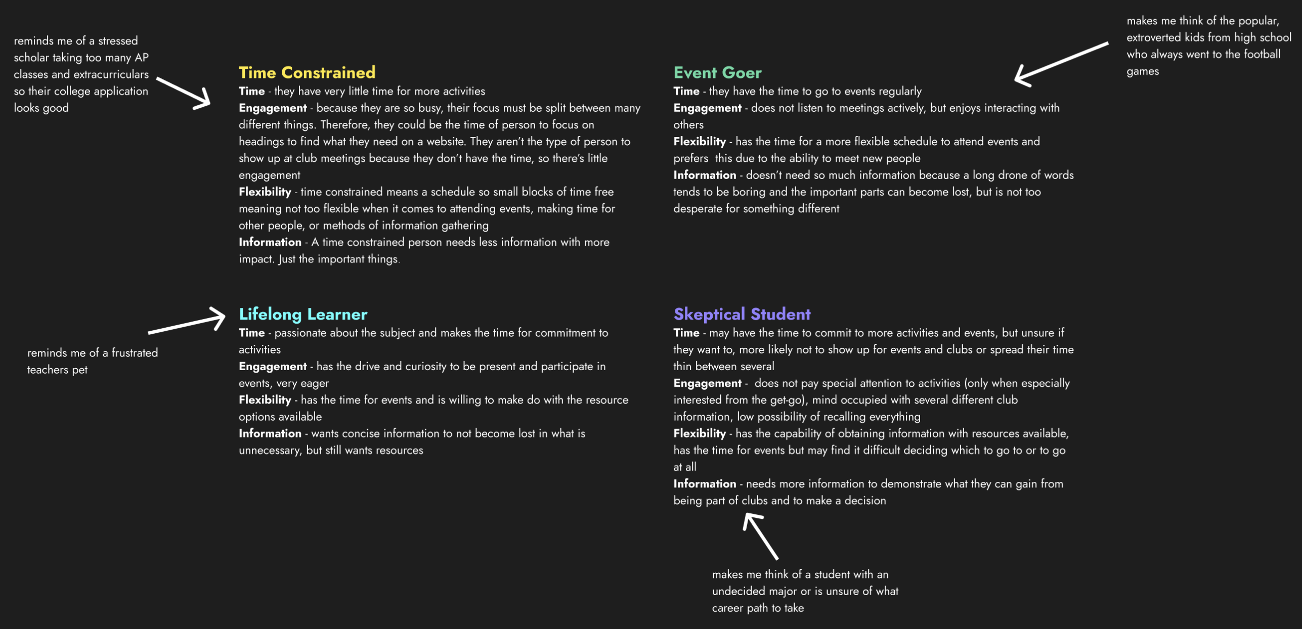 I added to the Time Constrained Student, which is a student who had very little time for any more activities therefore needed information that was straight to the point.