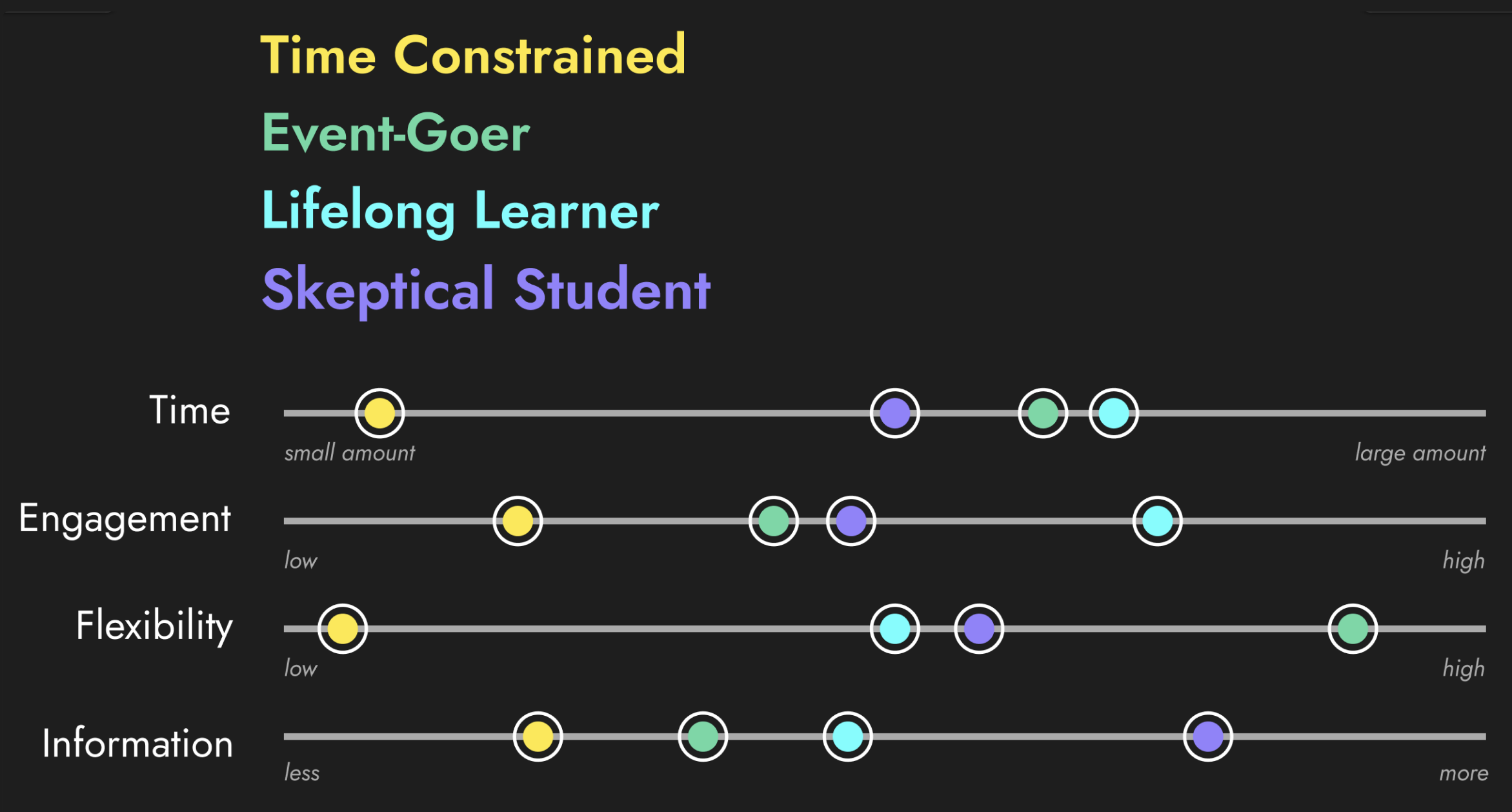 In addition, I created a chart that was used on our final document which depicted all four user personas in a minimalistic and visual way.