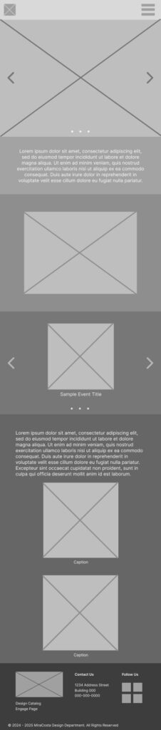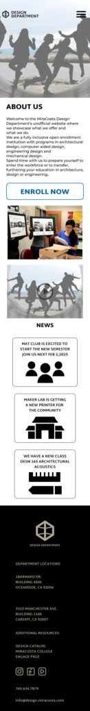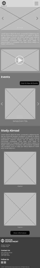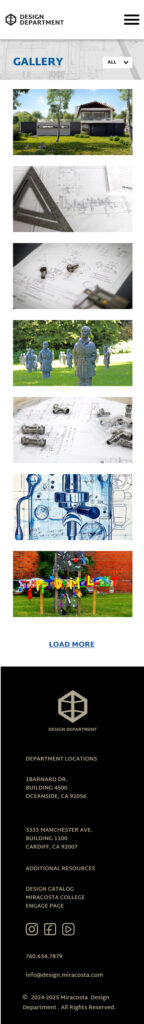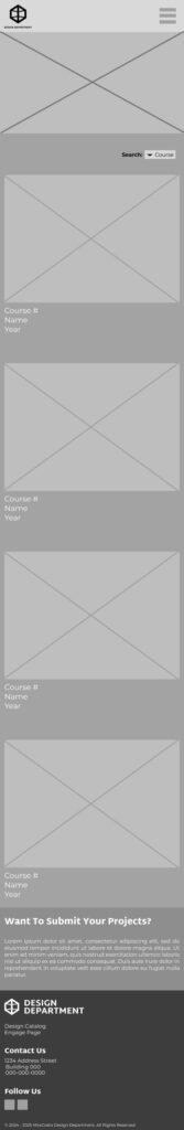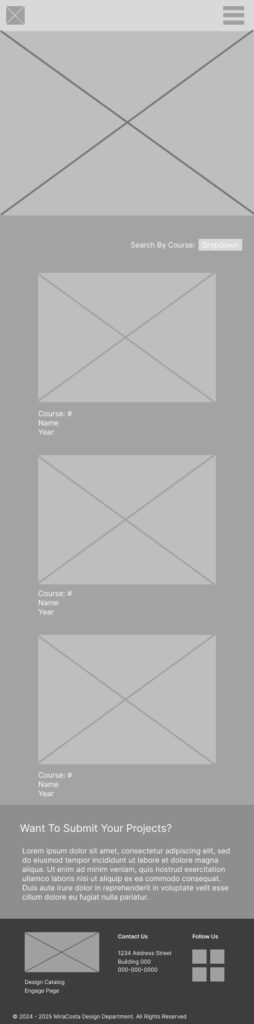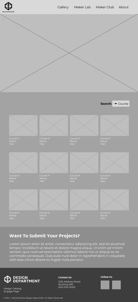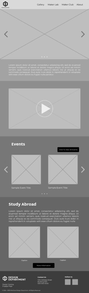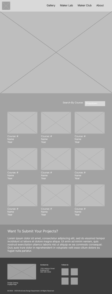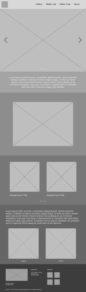 I create mobile and desktop versions of two pages. The first is the home page and the second is the gallery page where student work would be showcased and categorized by class.