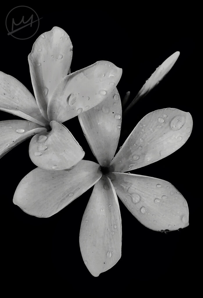 Then, I switched to an airbrush and slightly painted black over the really white petals. This was mainly on the left most flower. Other small details I added was lightly painting black in the centers of the flowers and I cropped the image.