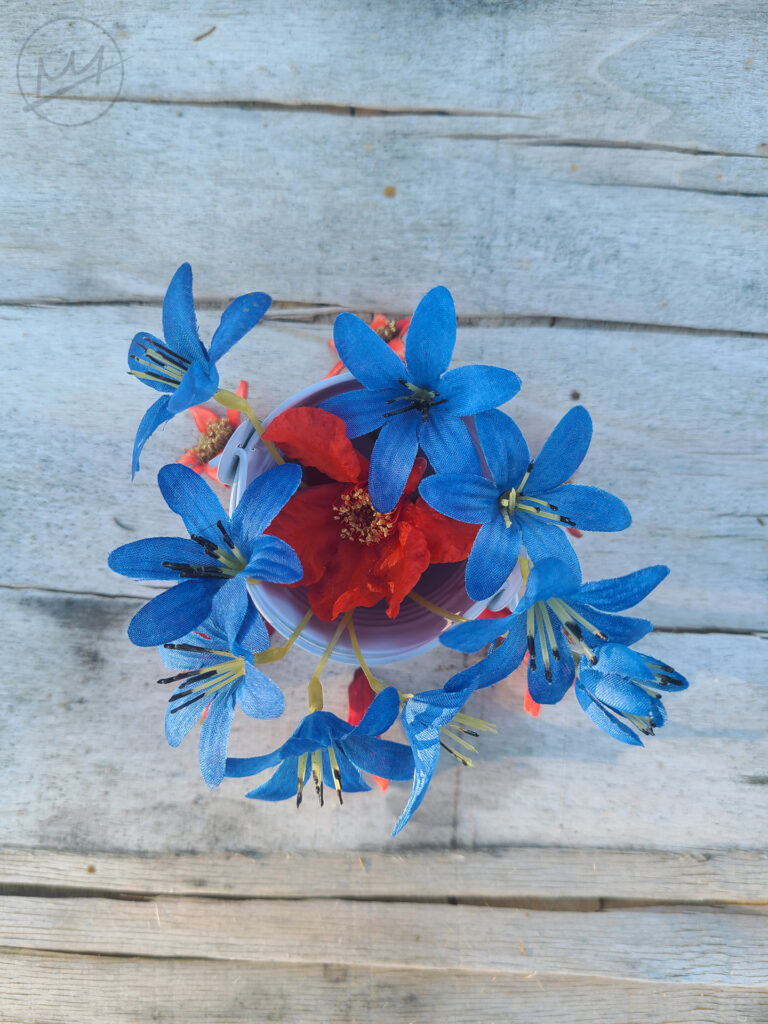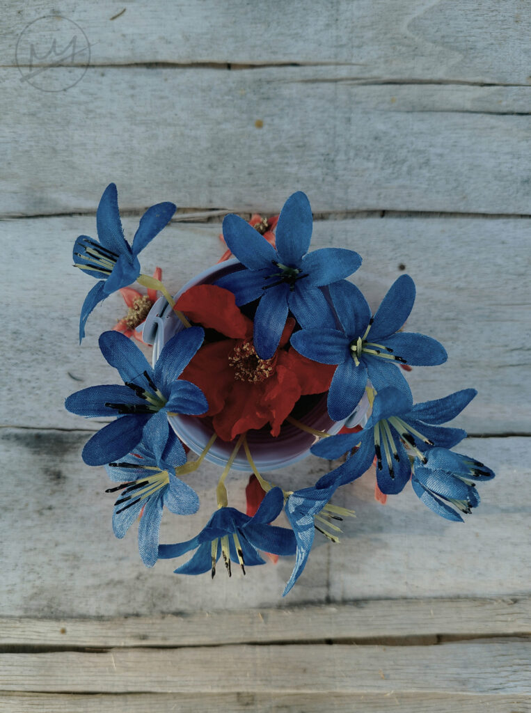 I started by arranging some flowers on some wood and taking a picture from above resulting in this picture: